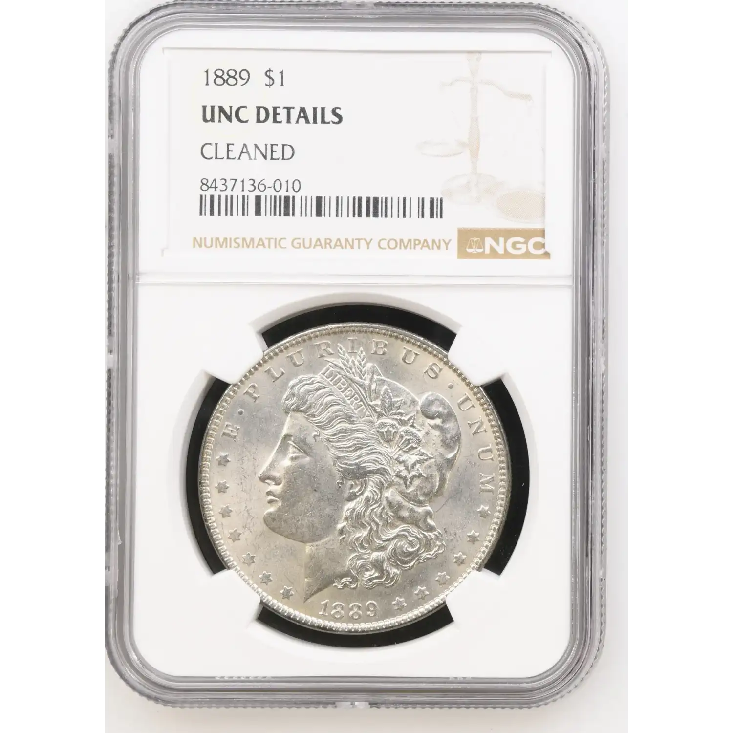 1889 P Morgan Silver Dollar NGC UNC Details (cleaned)