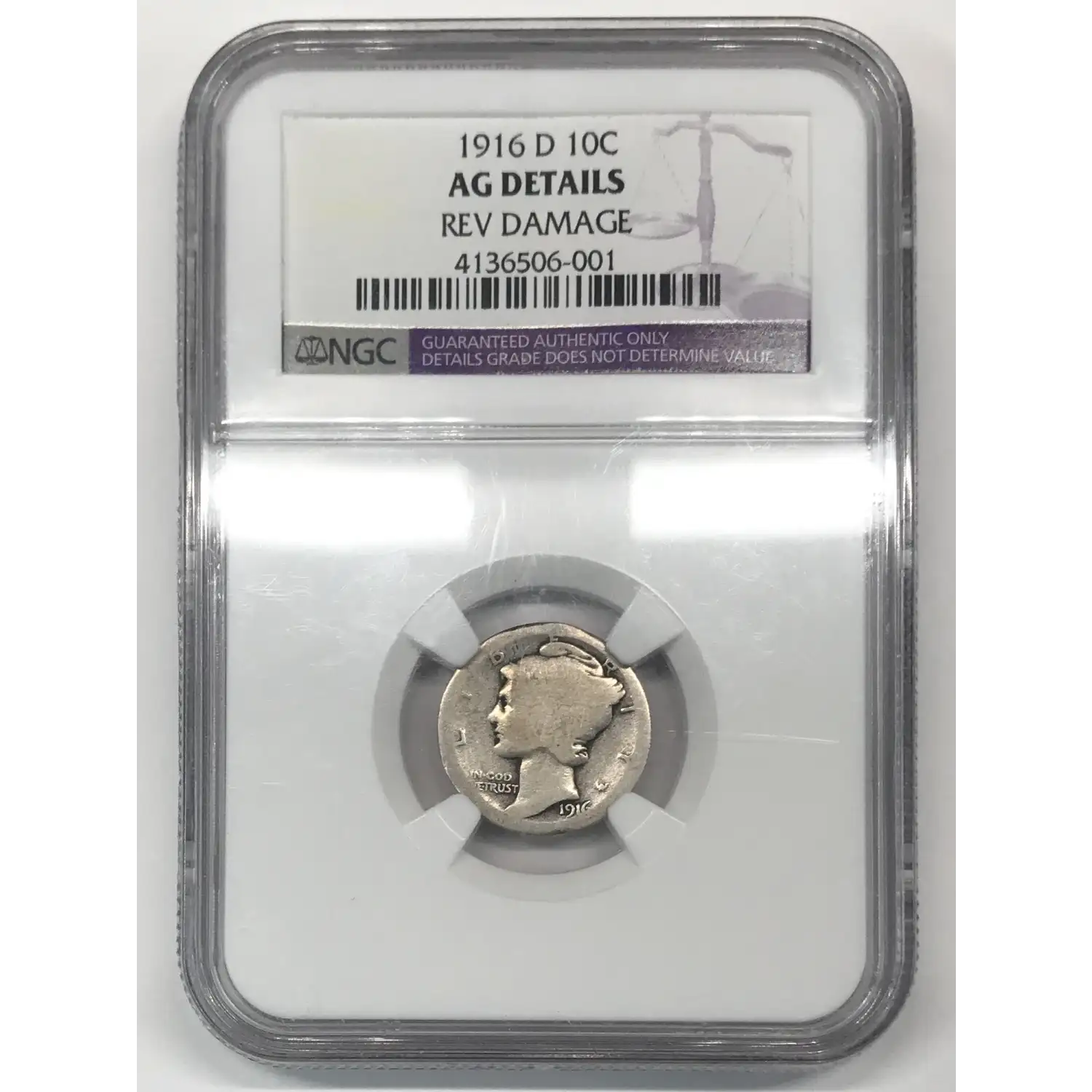 1916-D Mercury Dime NGC AG (ABOUT GOOD) Details (reverse damage)