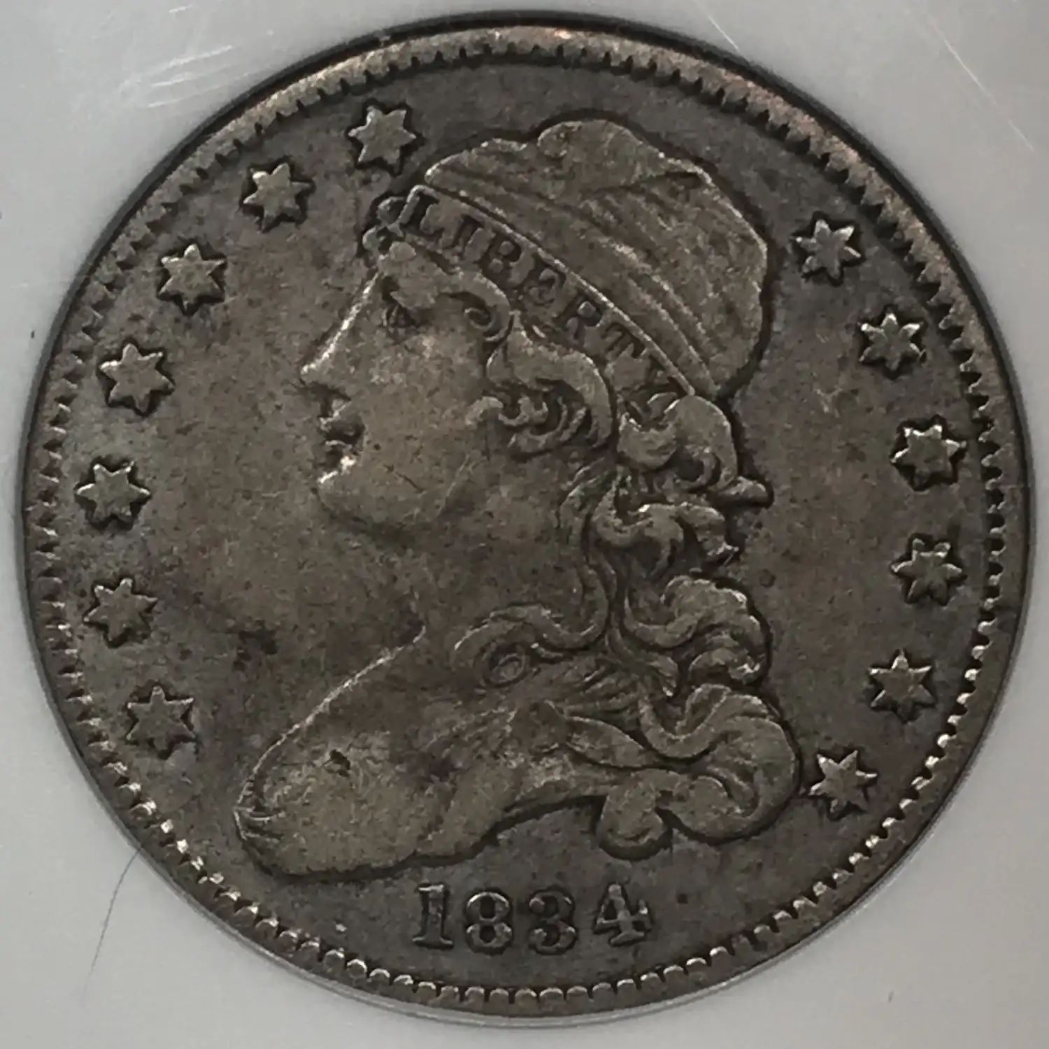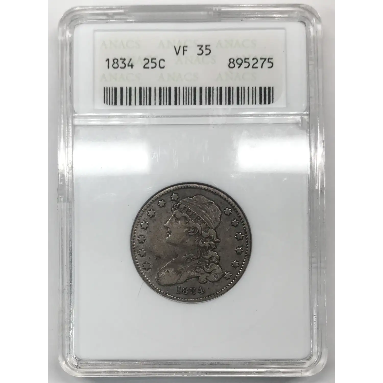 1834 P Capped Bust Quarter ANACS VF-35 - old white soapbox holder