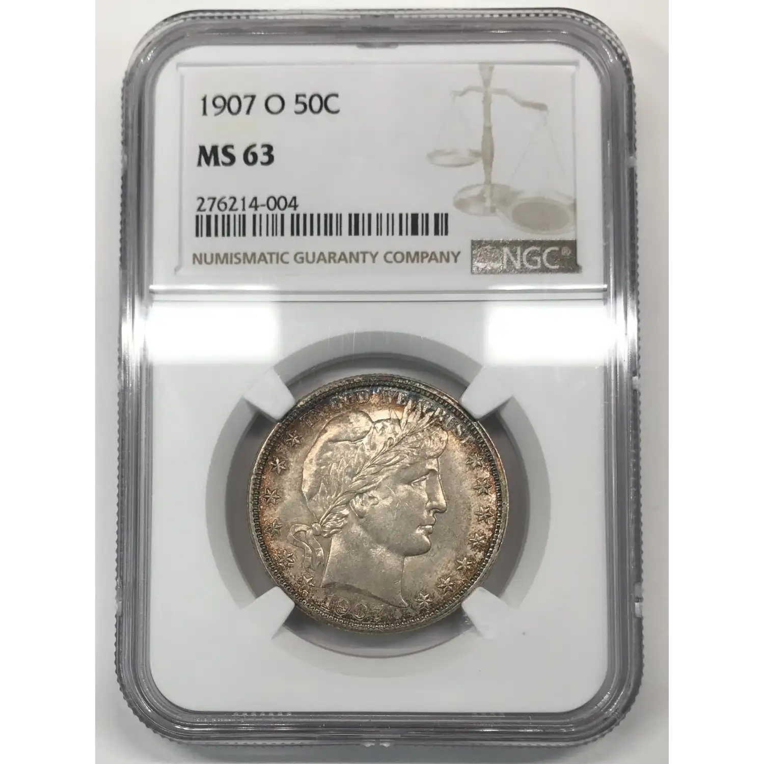 1907 O Barber Half Dollar NGC MS-63 - nice tone