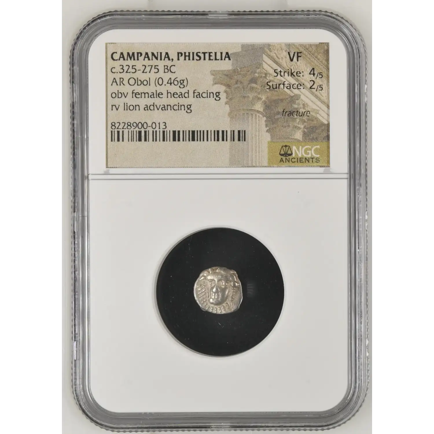 Greece, Campania, Phistelia, c. 325-275 BC, AR Obol NGC Ancients VF 4 2 (fracture)