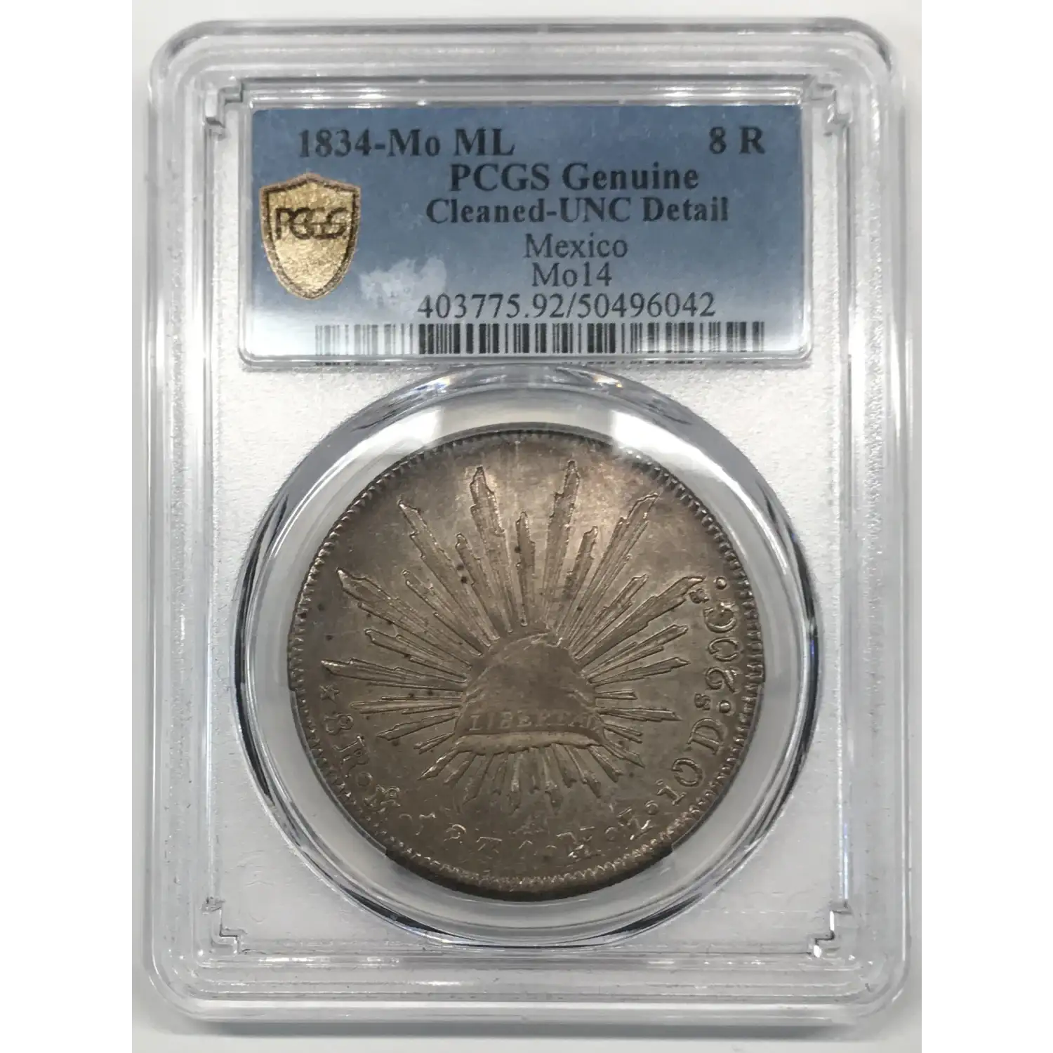 1834-Mo ML Mexico Silver 8 REALES PCGS Genuine - UNC Details (92 - Cleaned) Mo14