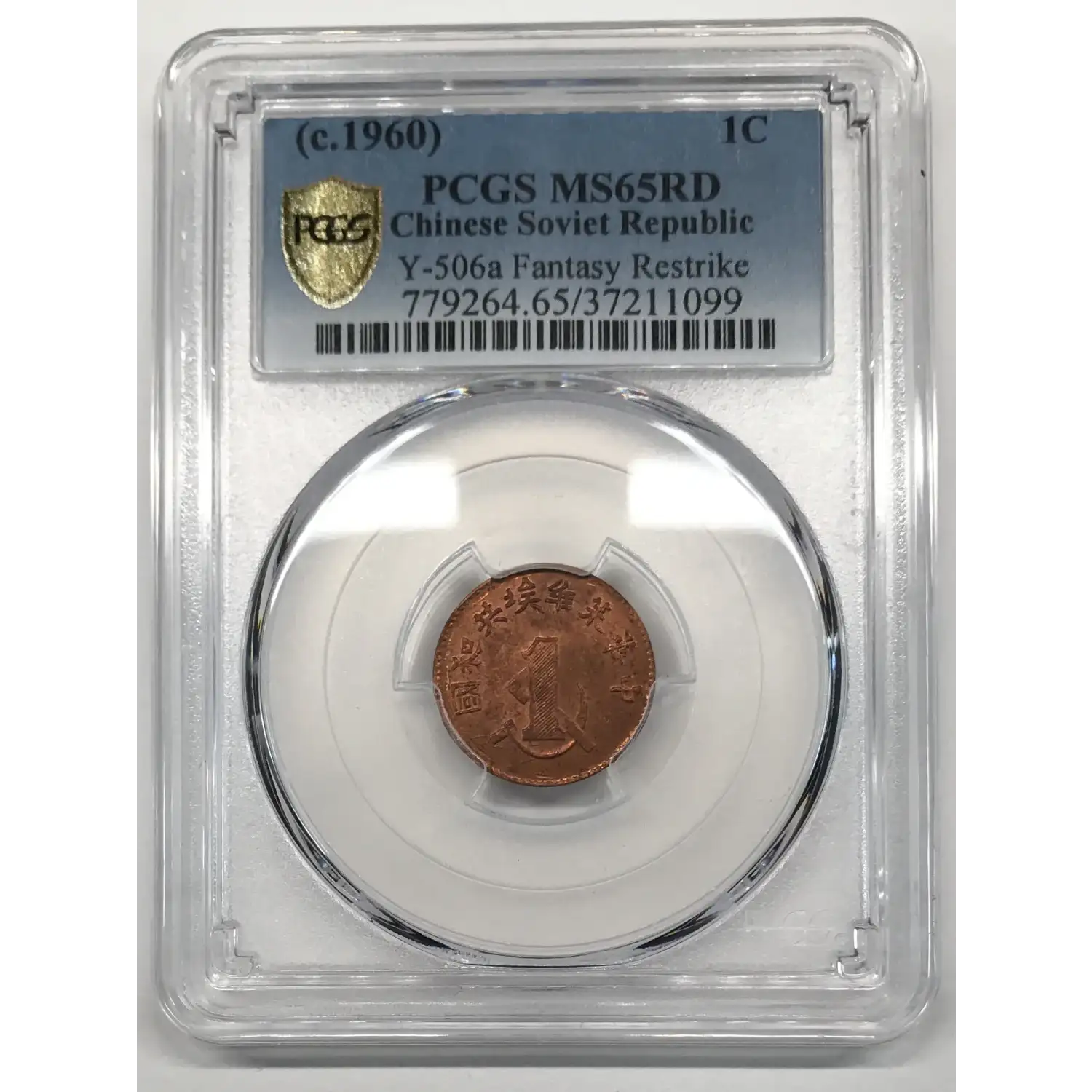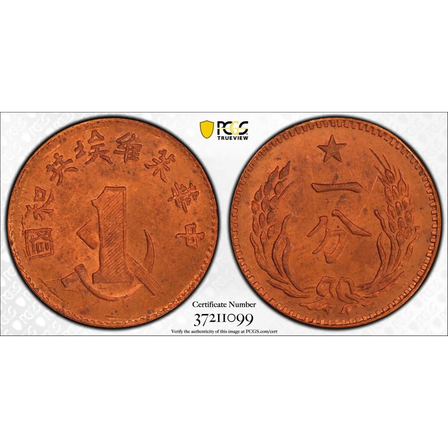 c. 1960 Chinese Soviet Republic Copper 1 Cent/Fen PCGS MS-65 RD - Y-506a Fantasy Restrike