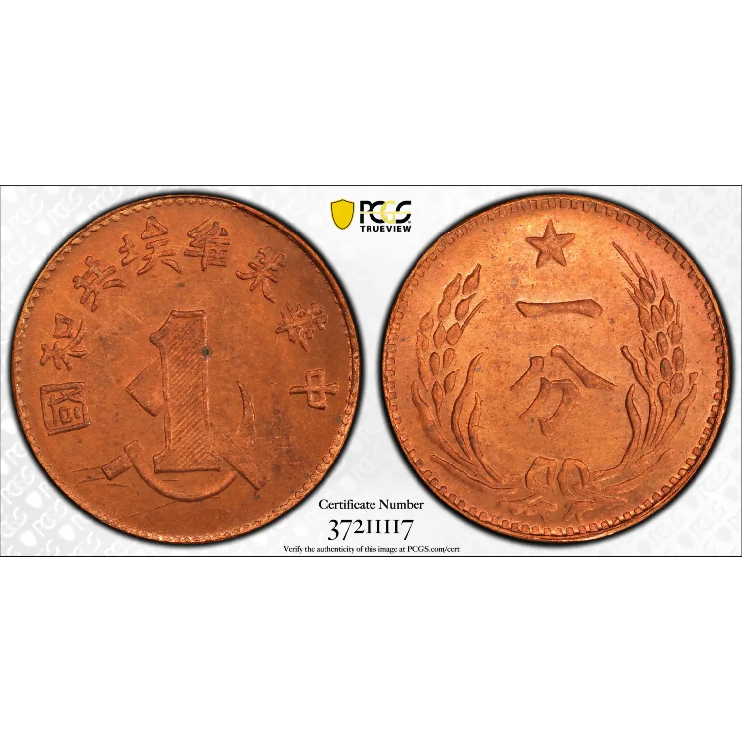 c. 1960 Chinese Soviet Republic Copper 1 Cent/Fen PCGS MS-65 RD - Y-506a Fantasy Restrike