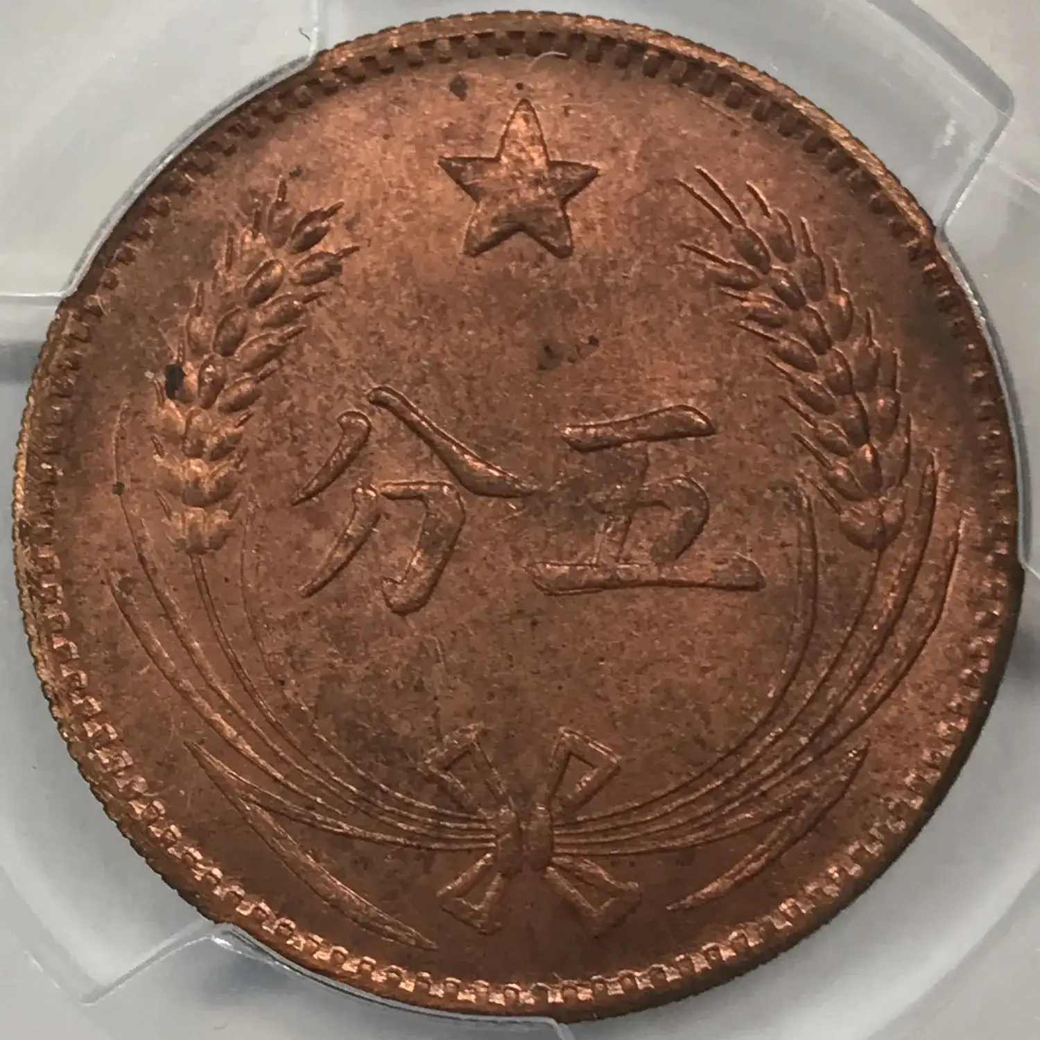 c. 1960 Chinese (Szechuan-Shensi) Soviet Republic Copper 5 Cents/Fen PCGS MS-64 RB