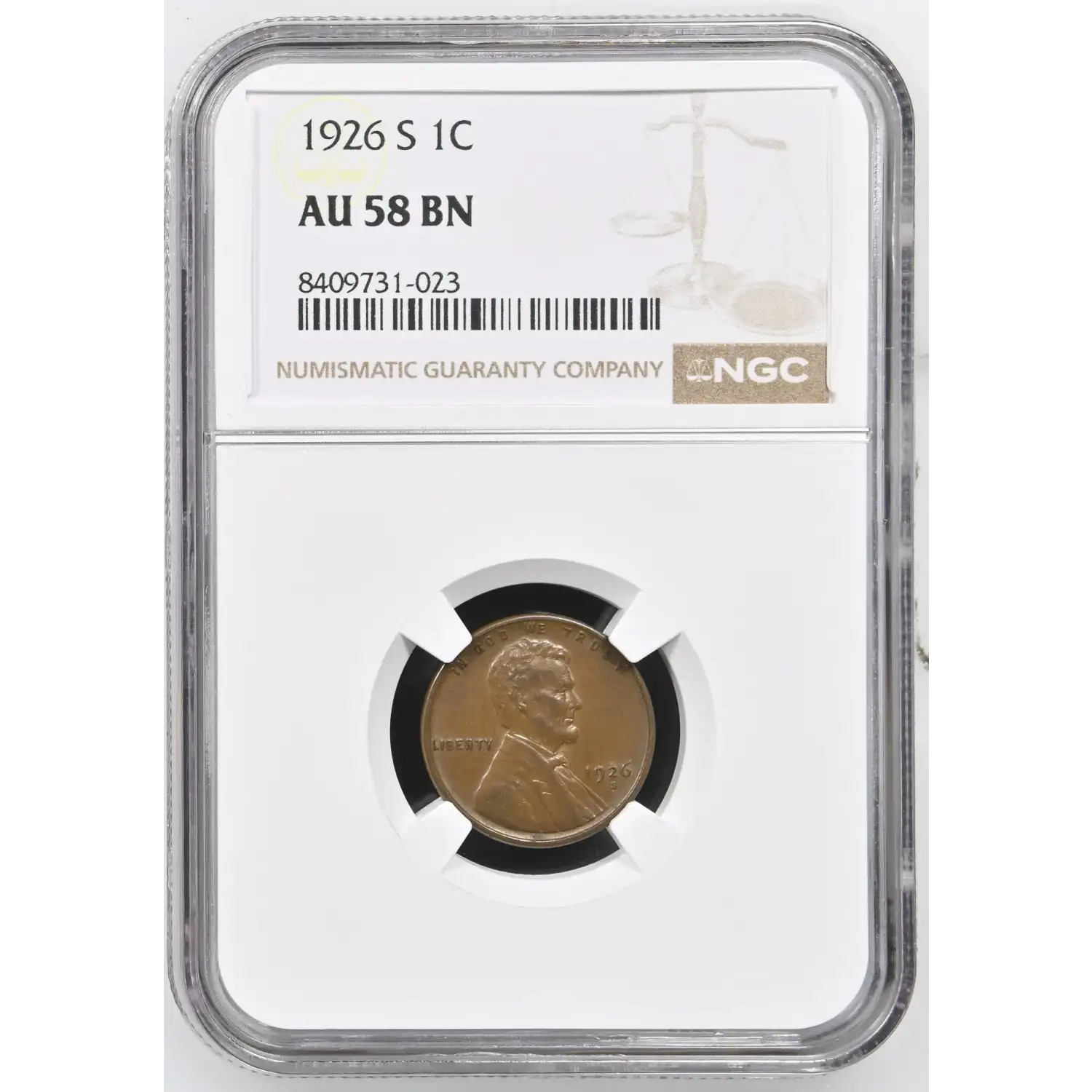 1926-S Lincoln Wheat Cent NGC AU-58 BN