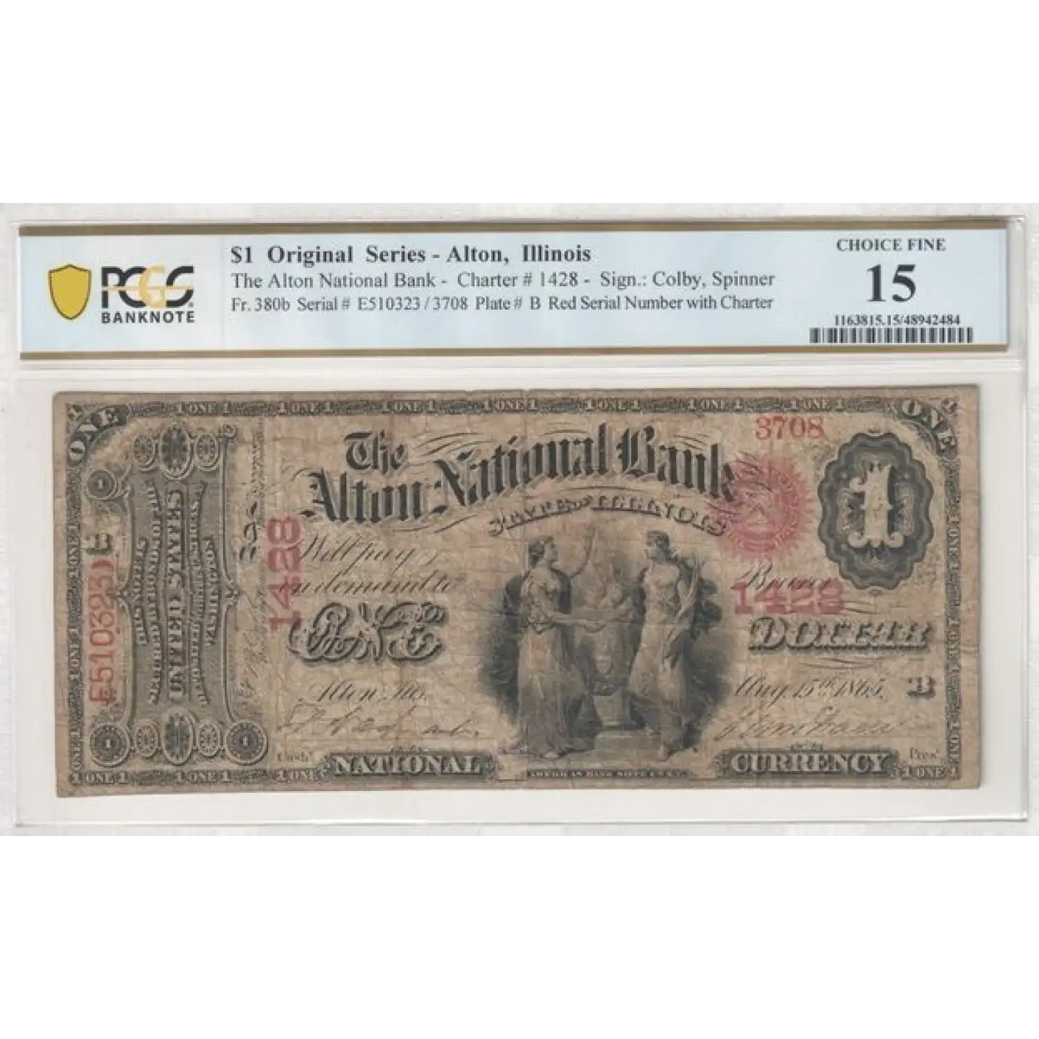 Alton National Bank Illinois Original Series 1st Charter $1 Note CH#1428 FR#380b PCGS Banknote F 15